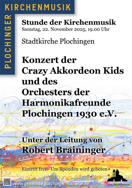 Das Orchester der Harmonikafreunde und die Crazy Akkordeon Kids laden Sie ein zum Kirchenkonzert in die Stadtkirche St. Blasius in Plochingen.